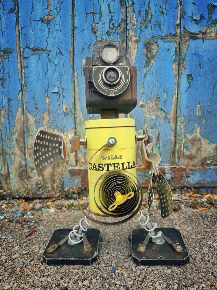 He’s not that big (37cm tall) but he’s handsome! Wind him up ( either by turning his key or telling him that he looks fat) and he’ll go round your house cleaning up after you. He’ll also bring his shammy leather with him to clean your car windows after you’ve visited that local dogging spot…
