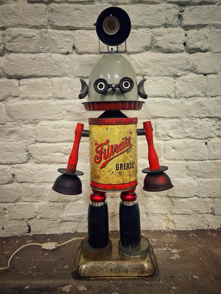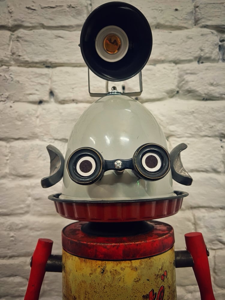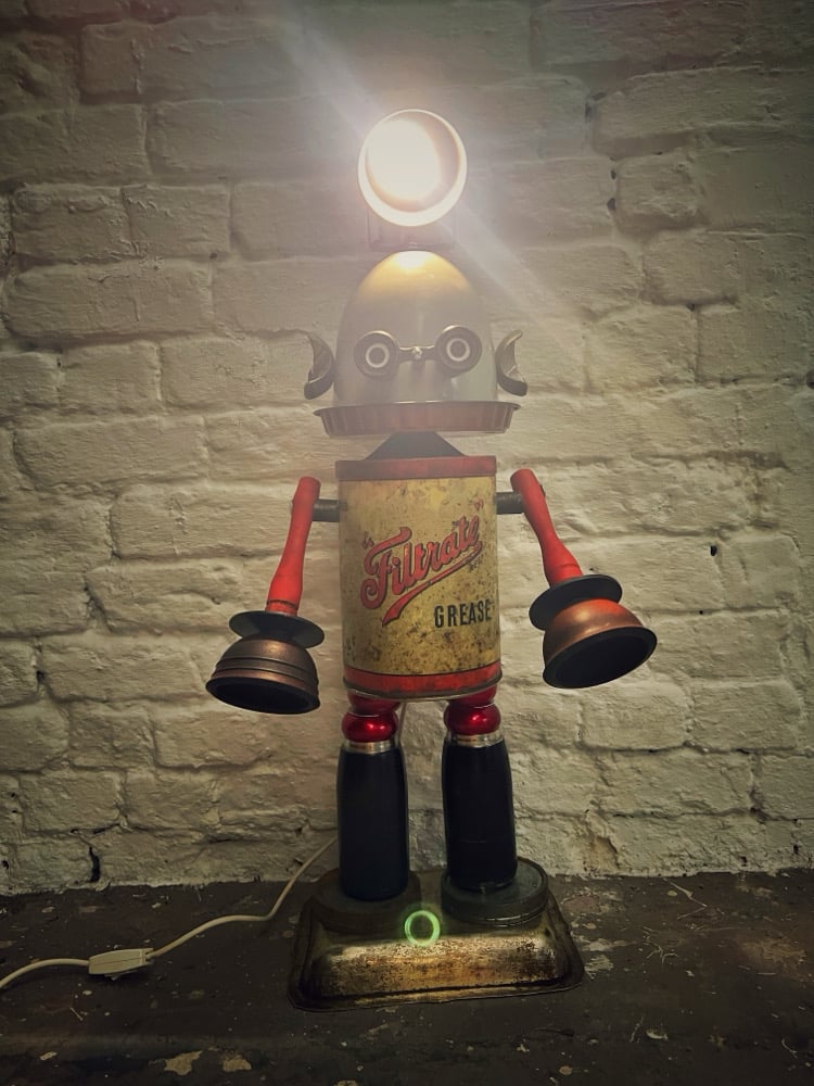 Greaser is one of my ‘proper’ looking builds. When I say ‘proper’ I mean that he’s a classic 1950’s kind of robot-one you might see in a B movie. All the parts I’ve used are from the 1950’s to keep with the theme.