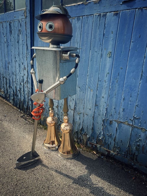 One for the robot golf fans out there! This sculpture stands at 5ft tall and is fully weatherproof so it can go outside. I figured a making his club out of a clothes iron might tickle a golf fan…